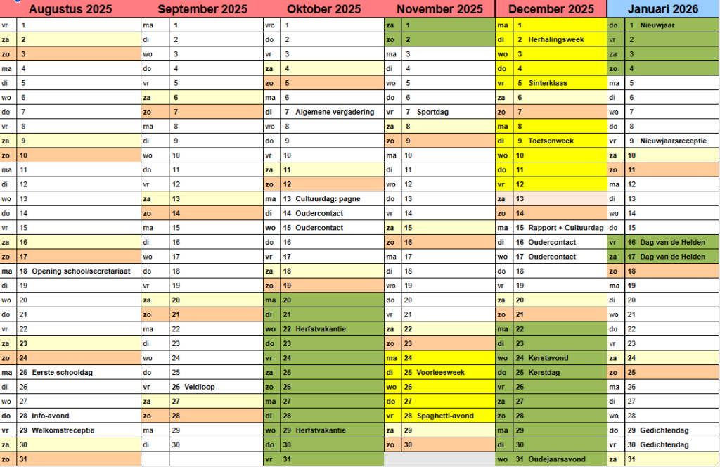 Hieronder kan u de schoolkalender voor 2025-2026 terugvinden: